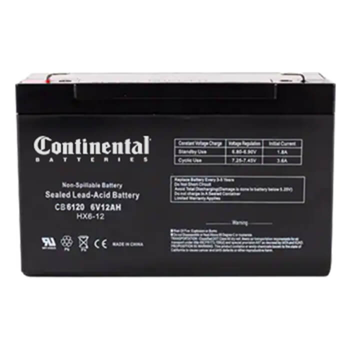 Discover the Continental 6 Volt 12 Amp SLA Battery F2 (CB6120-F2) at Battery Joe. Providing 6 Volts of reliable power, and a capacity of 12 Ah, this battery ensures long-lasting energy. The SLA chemistry ensures durability and a maintenance free application. Backed by a 6 Month warranty, this battery offers both performance and peace of mind.