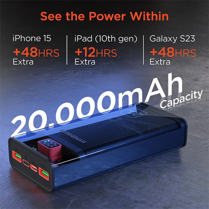 Whether you’re searching for a 20,000mAh transparent power bank, HyperGear ClearCharge XL 15827, 20W USB-C PD portable charger, fast charge power bank for iPhone Android, high capacity battery pack with LED display, best transparent power bank, or top-rated phone accessories for reliable on-the-go power, this HyperGear ClearCharge XL combines massive capacity, rapid multi-device charging, and standout style in one essential tech gadget.
