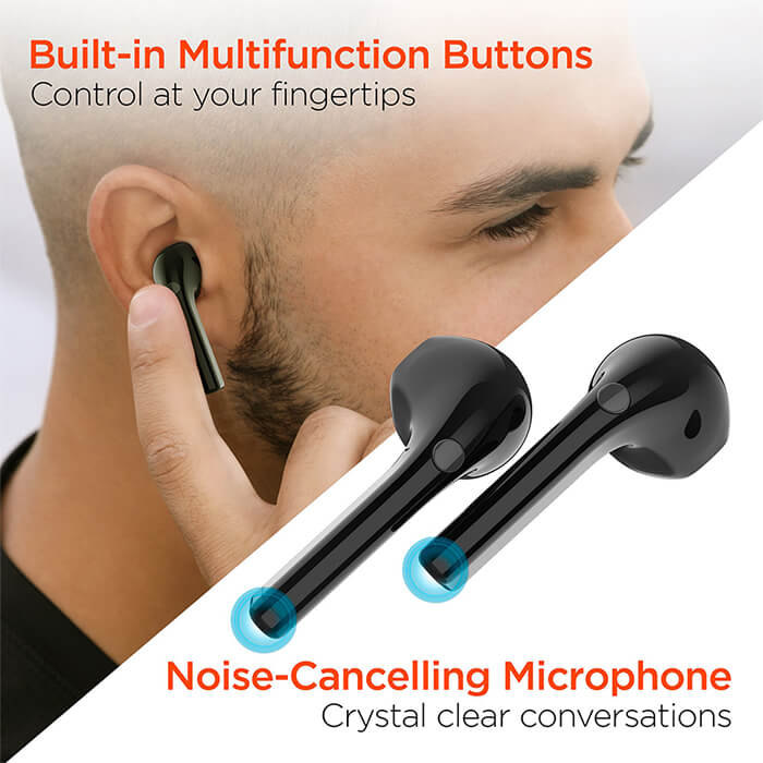 Experience superior sound on the go with the HyperGear True Wireless Bluetooth Earbuds in sleek black, model 15166. These noise canceling earphones deliver HD stereo audio through a cable-free in-ear design, perfect for workouts, commuting, or daily use with your mobile phones and devices. Featuring advanced Bluetooth 5.0 technology for seamless quick-pairing and stable connections up to 33 feet, they provide wireless music streaming, hands-free calls with a built-in noise-canceling microphone, and intuitive touch controls. Sweatproof and lightweight, these Bluetooth earbuds are ideal for active users seeking reliable audio gear that combines comfort, performance, and portability for smartphones, tablets, and other Bluetooth-enabled gadgets.