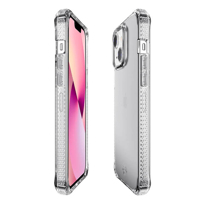 Protect your Apple iPhone 13 with the Itskins Spectrum R Clear Case in Transparent. This premium protective phone case delivers AI-enhanced 10-foot drop protection using 100% recycled materials while keeping your iPhone’s original design fully visible—perfect for everyday carry by retail customers and business professionals alike.