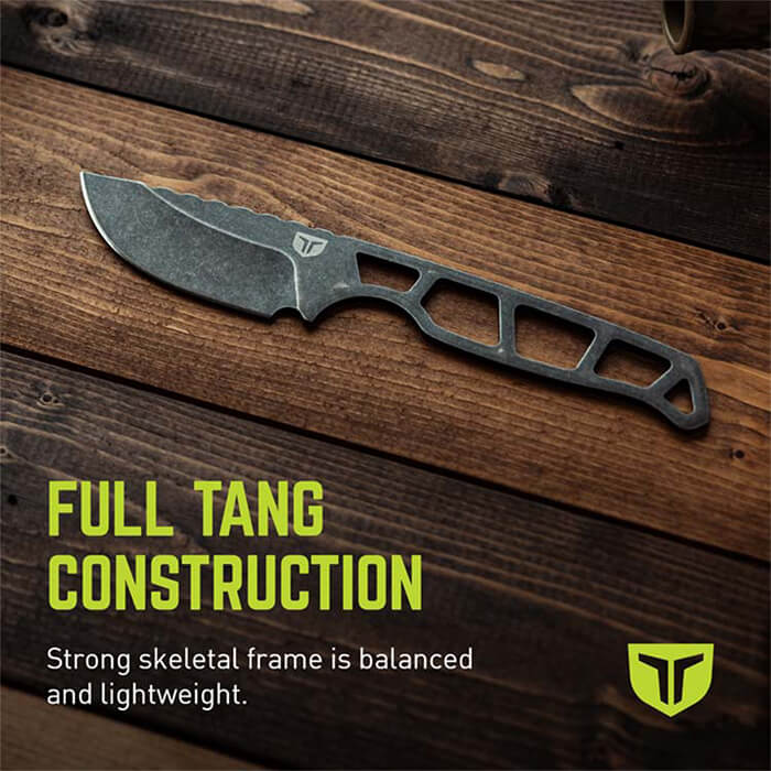 • Full tang skeletal construction ensures maximum strength, balance, and lightweight carry